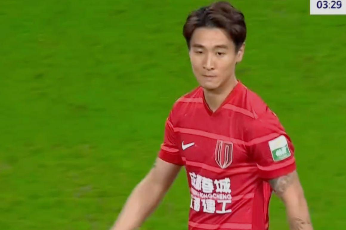 北京时间9月12日,中超联赛第24轮,成都蓉城主场迎战长春亚泰。开场仅仅4分钟,韦世豪任意球暴力抽射,皮球弹地后进入网窝。蓉城1-0领先。